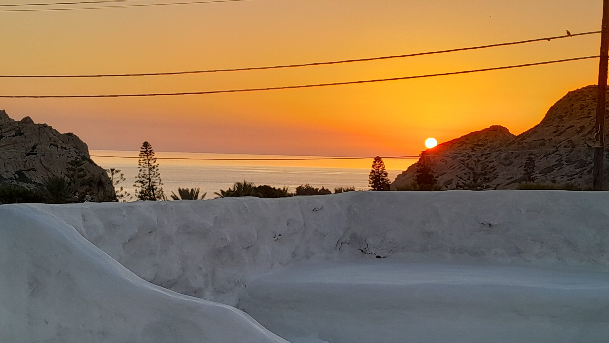 Every room has a private balcony with sea & sunset view. Back sunny terrace with garden view, designed with white built in seats, ideal for windy days, reading and sunbathing/exercising.